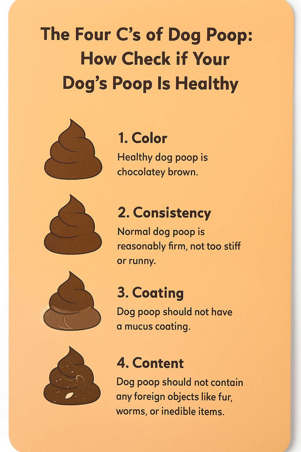 健康な犬のうんちは、適度な硬さがあり、形がしっかりしています。地面に落としたときに少し弾力があり、拾いやすい状態が目安です。色は食事内容によって多少変わりますが、極端に黒い、白っぽい、赤みがある場合は注意が必要です。また、強烈な悪臭が続く場合も、胃腸環境が乱れている可能性があります。